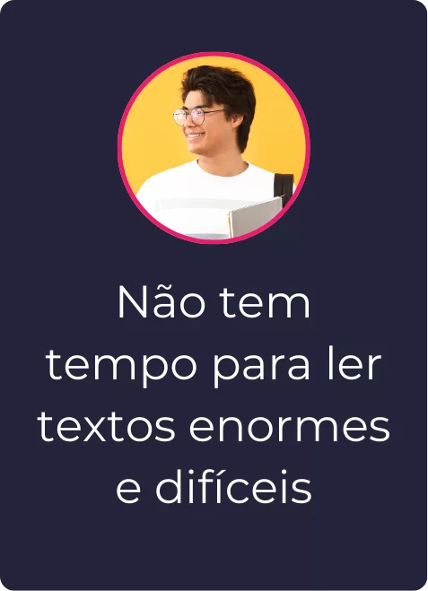 Chega de ler textos enormes e ter que fazer os seus próprios resumos, sem saber quais são os pontos mais importantes.
